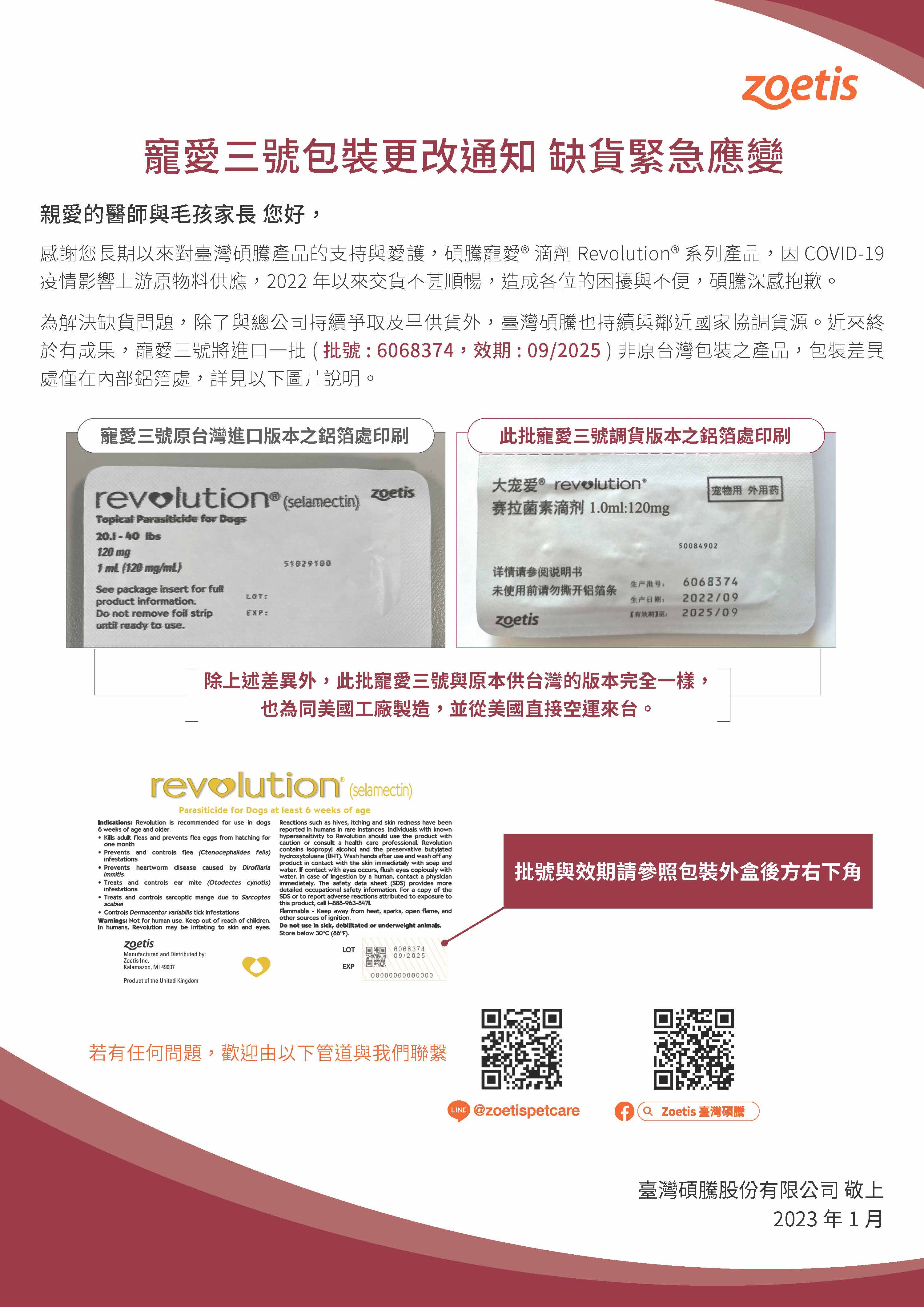 在疫情造成全球供貨緊張與缺貨的情況下,為了滿足台灣市場需求,我們最近向鄰近國家借調一批寵愛3號滴劑上市