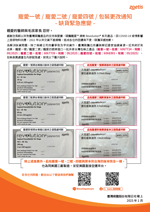 待後續全球供貨穩定,我們會改回進口原本的寵愛滴劑